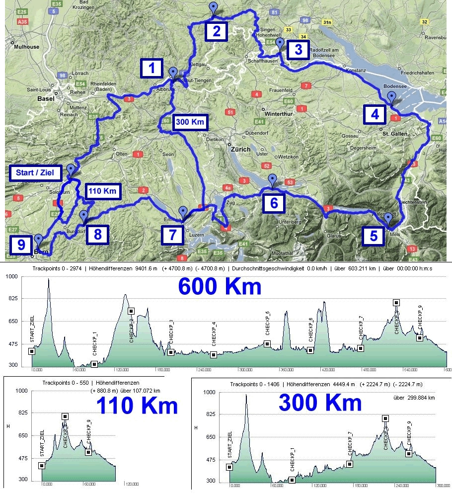 | GPX Strecke Nord | GPX Strecke Süd | GPX Strecke West | Roadbook Brevets 200 / 300 / 400 Km |
